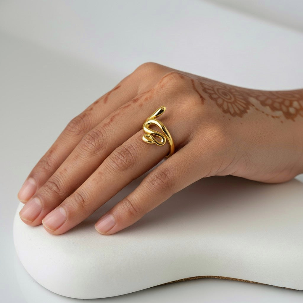 Unleash your bold elegance with this stunning gold-plated snake-inspired ring, crafted to symbolize power, mystery, and transformation. Its sleek, modern design wraps gracefully around your finger, while the adjustable size ensures a perfect fit for every hand.
